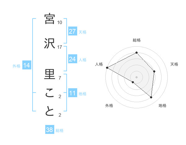 宮沢 里ことさんの外格は14画の1点!
