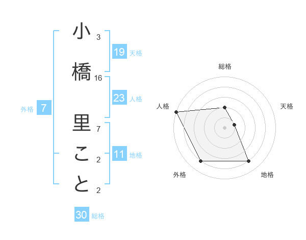小橋 里ことさんを姓名の画数から五運を鑑定