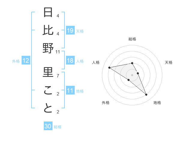 日比野 里ことさんを姓名の画数から五運を鑑定