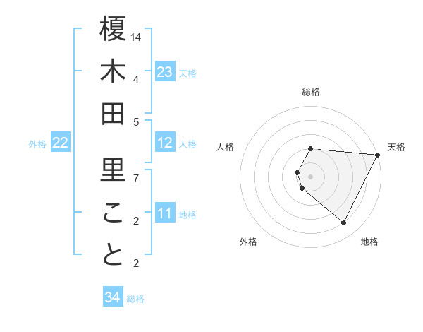 榎木田 里ことさんの天格は23画の5点!