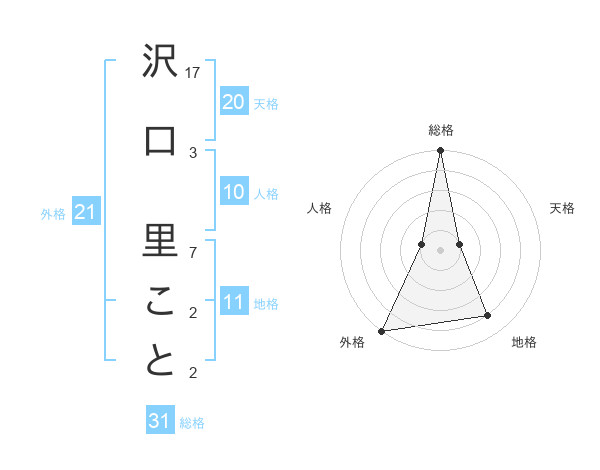沢口 里ことさんを姓名の画数から五運を鑑定