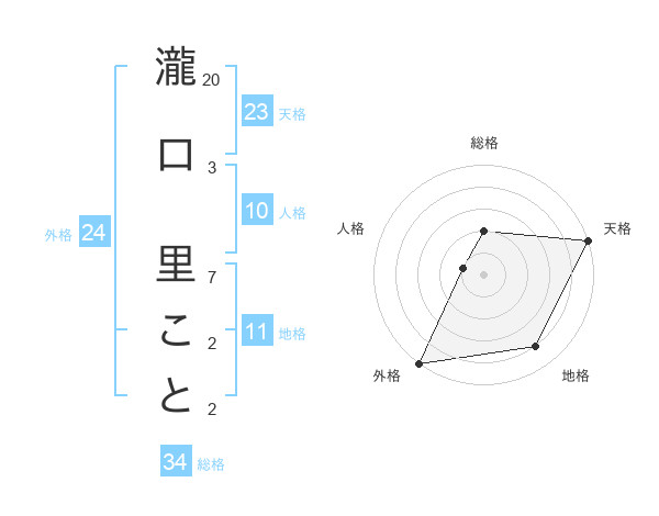 瀧口 里ことさんを姓名の画数から五運を鑑定
