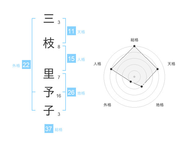 三枝 里予子さんを姓名の画数から五運を鑑定