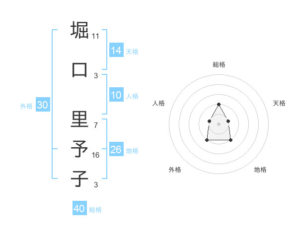 堀口 里予子さんを姓名の画数から五運を鑑定
