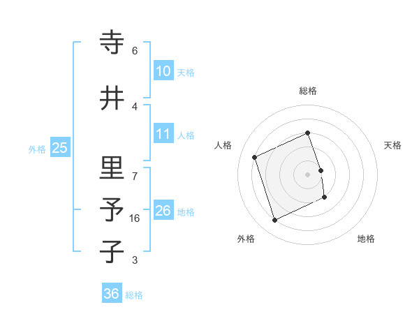寺井 里予子さんを姓名の画数から五運を鑑定