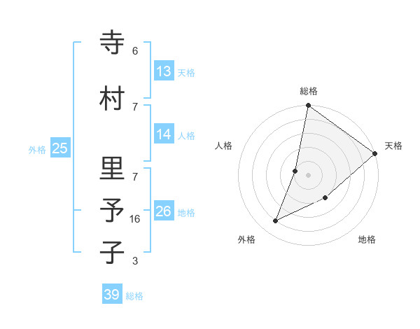 寺村 里予子さんの総格は39画の5点!