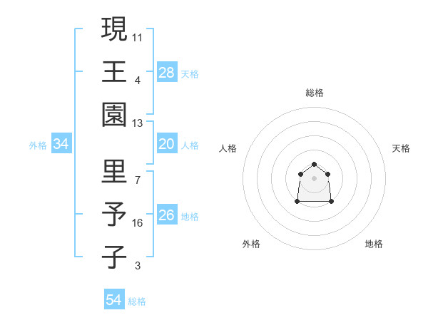 現王園 里予子さんの総格は54画の1点!