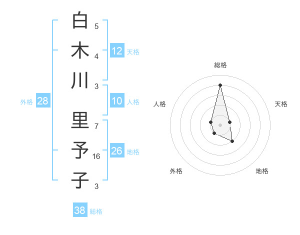 白木川 里予子さんを姓名の画数から五運を鑑定