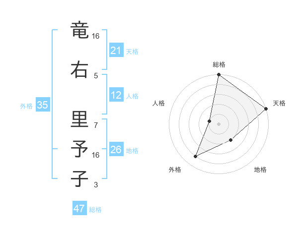 竜右 里予子さんを姓名の画数から五運を鑑定