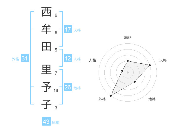 西牟田 里予子さんの天格は17画の4点!