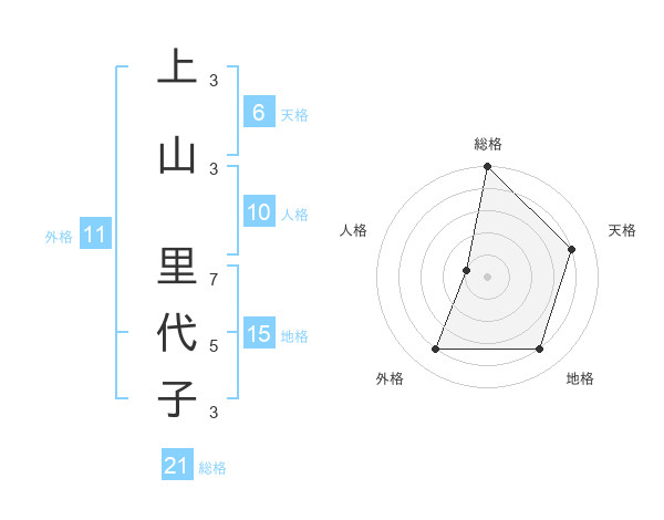 上山 里代子さんの総格は21画の5点
