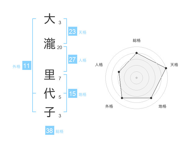 大瀧 里代子さんを姓名の画数から五運を鑑定