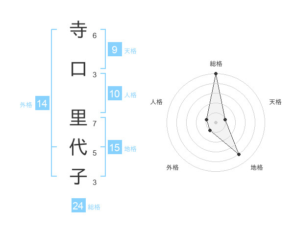 寺口 里代子さんを姓名の画数から五運を鑑定