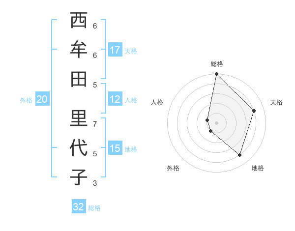 西牟田 里代子さんを姓名の画数から五運を鑑定