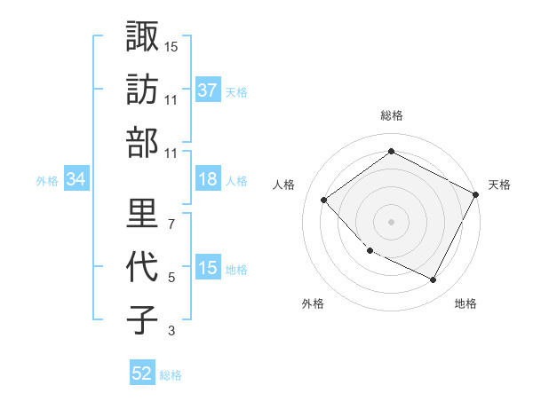 諏訪部 里代子さんの天格は37画の5点!