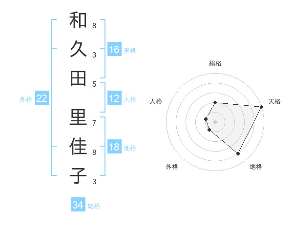 和久田 里佳子さんを姓名の画数から五運を鑑定