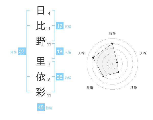 日比野 里依彩さんの外格は27画の3点!