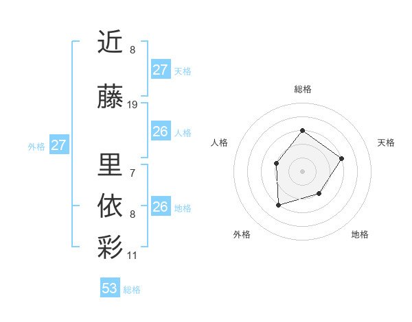 近藤 里依彩さんを姓名の画数から五運を鑑定
