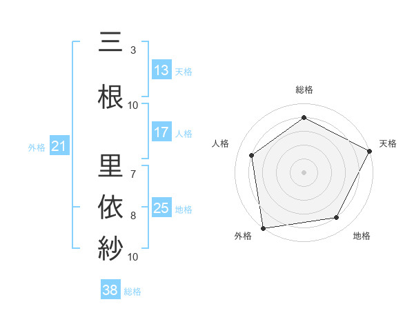 三根 里依紗さんの天格は13画の5点!