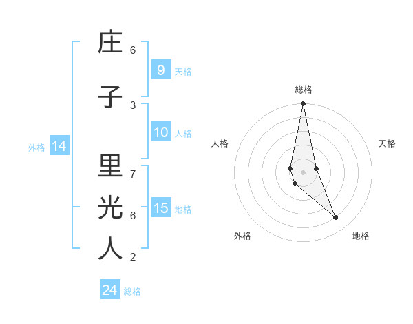 庄子 里光人さんを姓名の画数から五運を鑑定