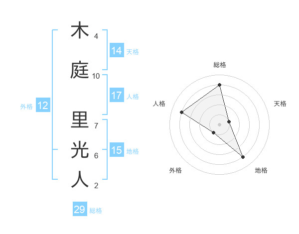 木庭 里光人さんの総格は29画の4点!