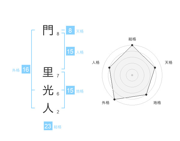 門 里光人さんの総格は23画の5点!