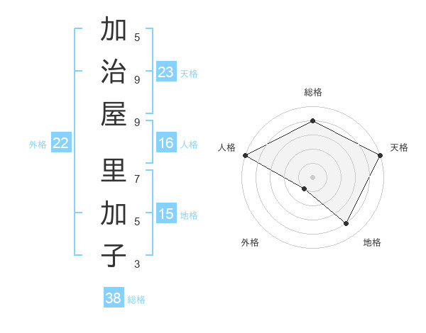 加治屋 里加子さんの天格は23画の5点!