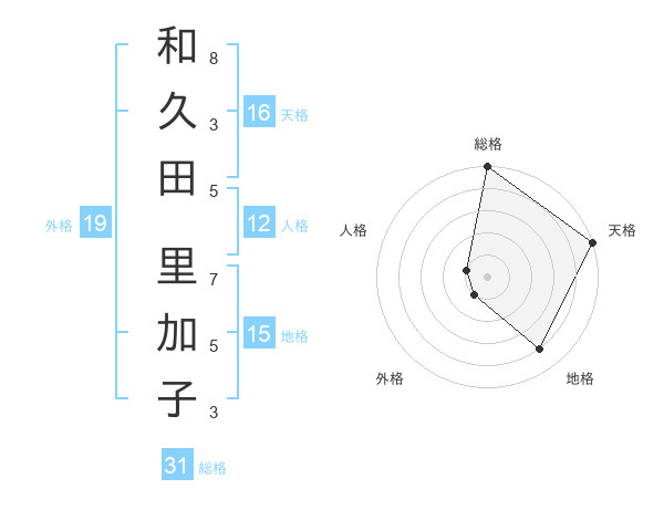 和久田 里加子さんの総格は31画の5点!