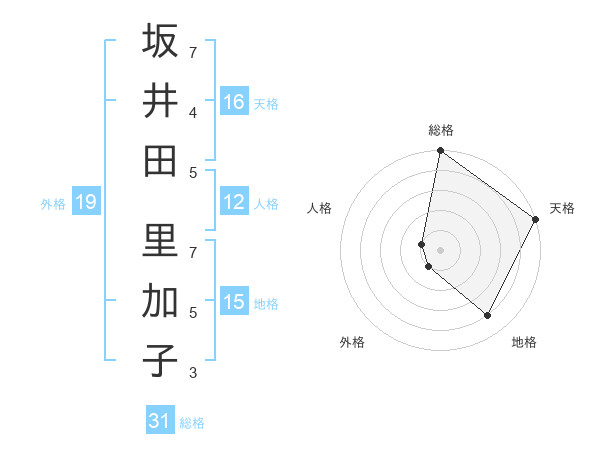坂井田 里加子さんの天格は16画の5点!