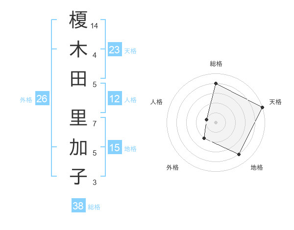 榎木田 里加子さんを姓名の画数から五運を鑑定