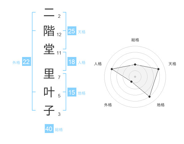 二階堂 里叶子さんを姓名の画数から五運を鑑定