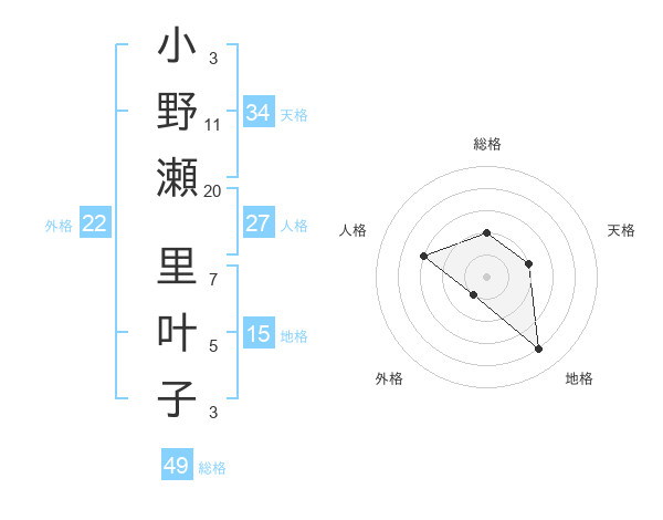 小野瀬 里叶子さんを姓名の画数から五運を鑑定