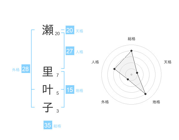 瀬 里叶子さんの総格は35画の4点!