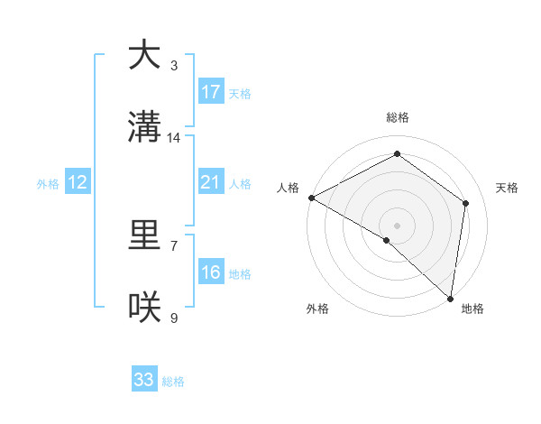 大溝 里咲さんの天格は17画の4点!