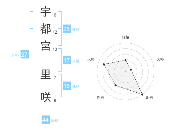 宇都宮 里咲さんの総格は44画の2点!