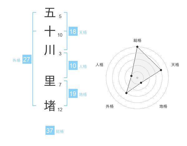 五十川 里堵さんを姓名の画数から五運を鑑定