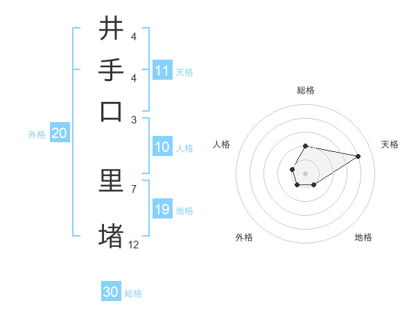 井手口 里堵さんを姓名の画数から五運を鑑定