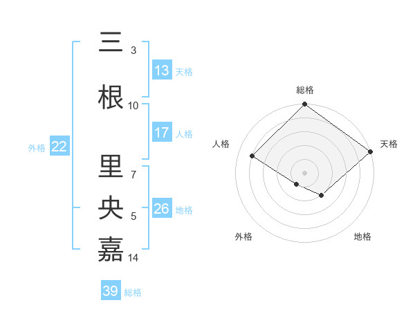 三根 里央嘉さんを姓名の画数から五運を鑑定