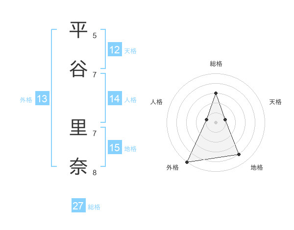 平谷 里奈さんを姓名の画数から五運を鑑定