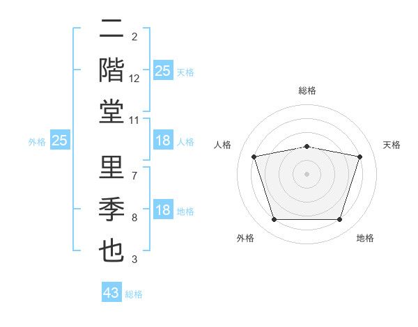 二階堂 里季也さんの天格は25画の4点!