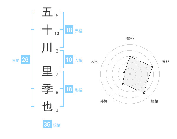 五十川 里季也さんを姓名の画数から五運を鑑定