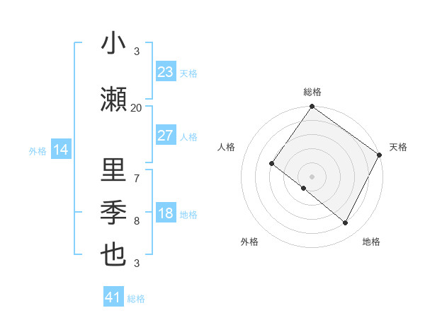 小瀬 里季也さんを姓名の画数から五運を鑑定