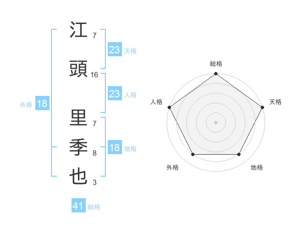 江頭 里季也さんを姓名の画数から五運を鑑定
