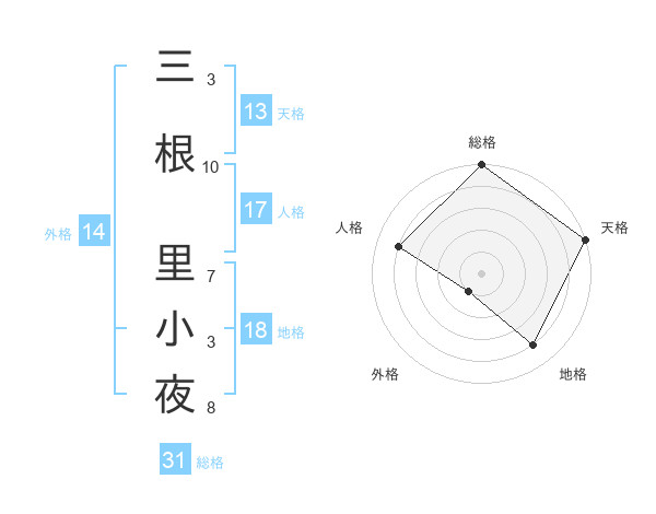 三根 里小夜さんを姓名の画数から五運を鑑定