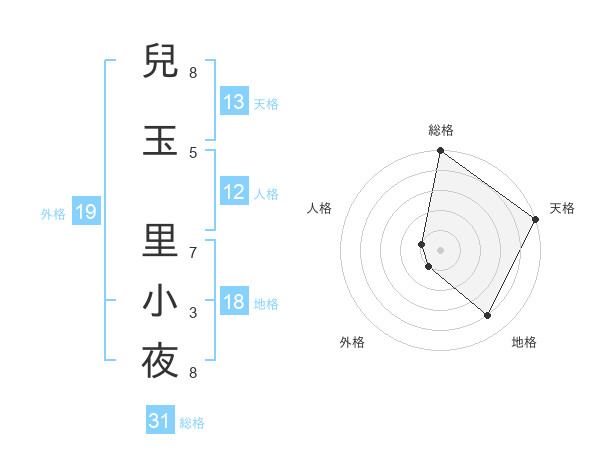 兒玉 里小夜さんを姓名の画数から五運を鑑定