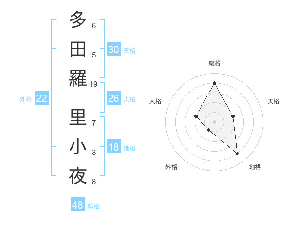 多田羅 里小夜さんの総格は48画の4点