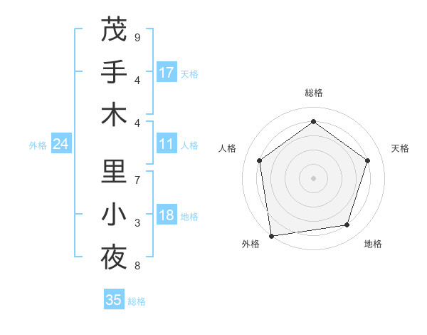 茂手木 里小夜さんを姓名の画数から五運を鑑定