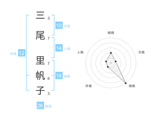 三尾 里帆子さんを姓名の画数から五運を鑑定