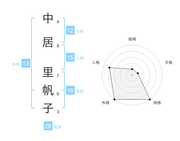 中居 里帆子さんを姓名の画数から五運を鑑定