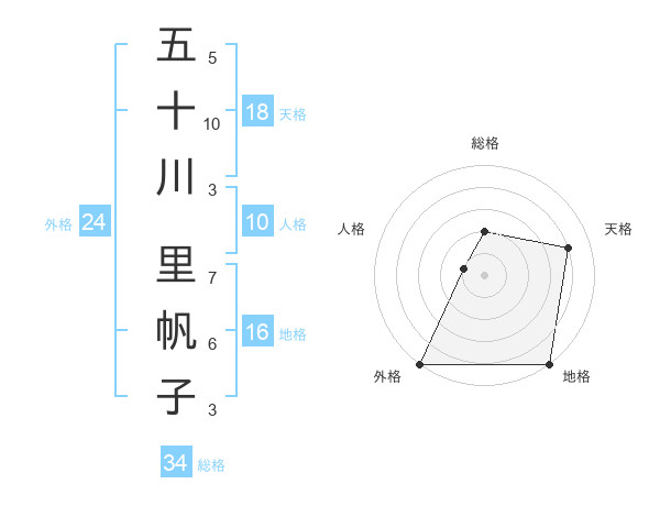 五十川 里帆子さんの総格は34画の2点!